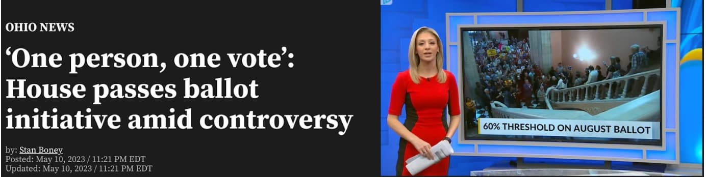 All eyes on Ohio where the Republican legislature has placed an issue on the sleepy August 8th ballot to increase the threshold for passing ballot measures from 50% to an extremely daunting 60%. The impetus: Republicans are hoping to kill a ballot measure protecting abortion which is in the signature-gathering phase. Beyond abortion, they are trying to choke off the last remaining avenue for progressive change in this red trifecta state. Pro-democracy groups are hoping to qualify automatic voting registration and redistricting reform ballot measures in 2024 (when popular Democratic Senator Sherrod Brown will be on the ballot). But those would be dead on arrival if the threshold goes up to 60%.