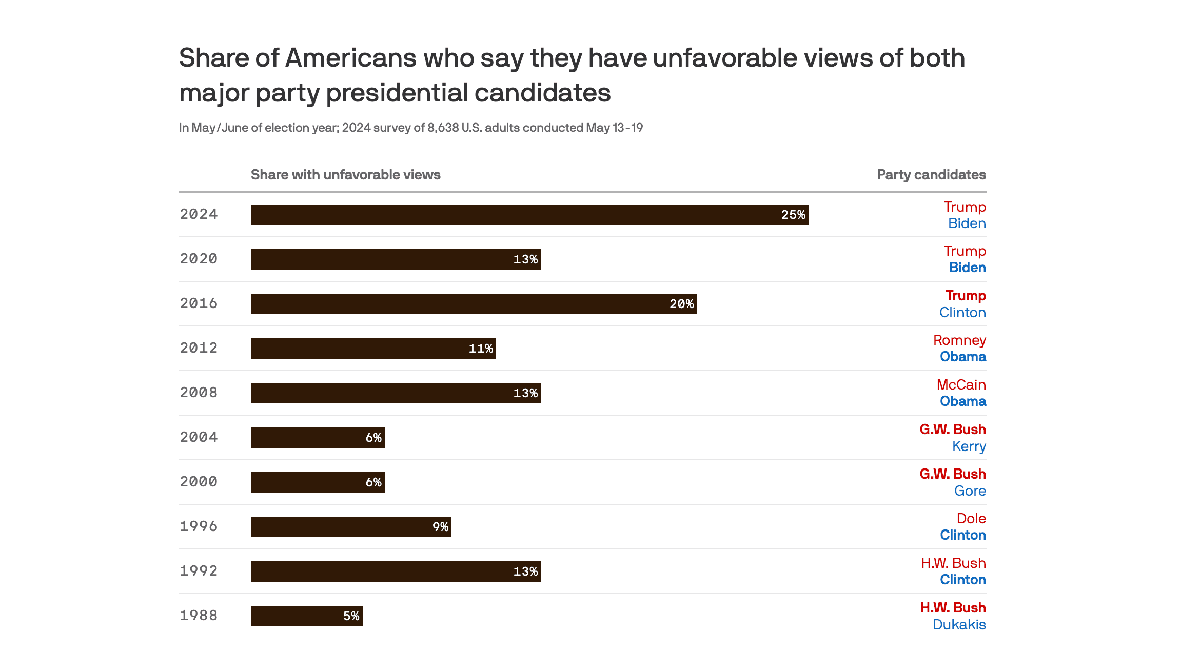 I’m finishing writing this on the eve of the first Presidential debate. It is unlikely that the debate moves the needle. Ditto for the Trump trials. Ditto for the RNC and DNC conventions – each should produce only temporary polling bumps. Sure, there will be plot twists, but the fundamentals of the race are mostly baked in.