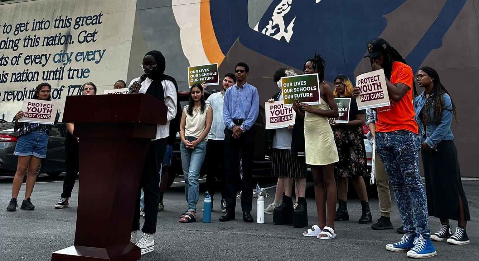 Unidos MN, speaking at their “Fund Our Futures” climate rally in 2023.