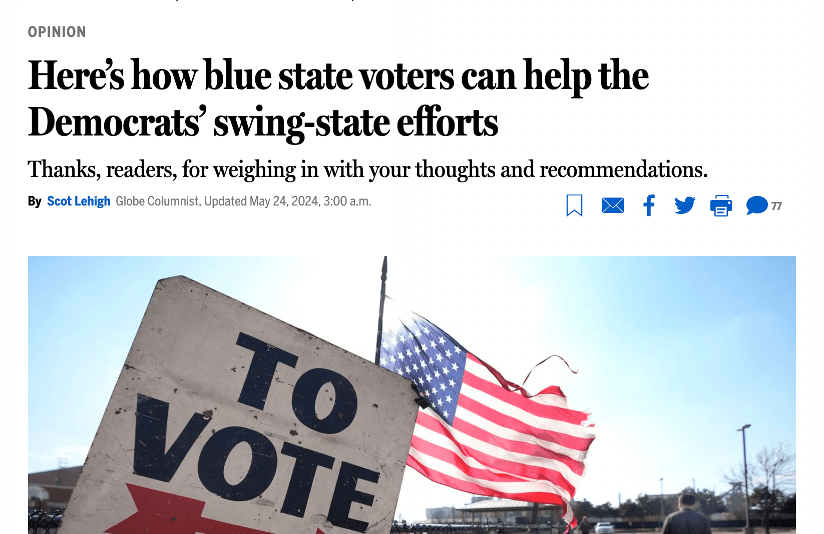 In this Boston Globe piece on how blue-state Democrats can make the most impact on the 2024 elections, columnist Scot Lehigh makes the case for investing in local organizing through Movement Voter Project.