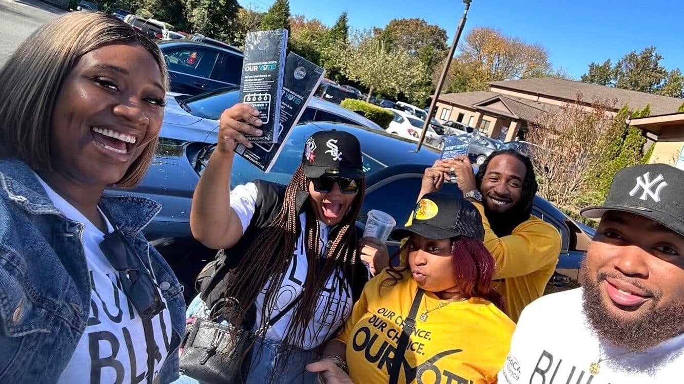Black Voters Matter Fund, getting out the vote in Ohio, in front of their iconic “We Won’t Black Down” bus.