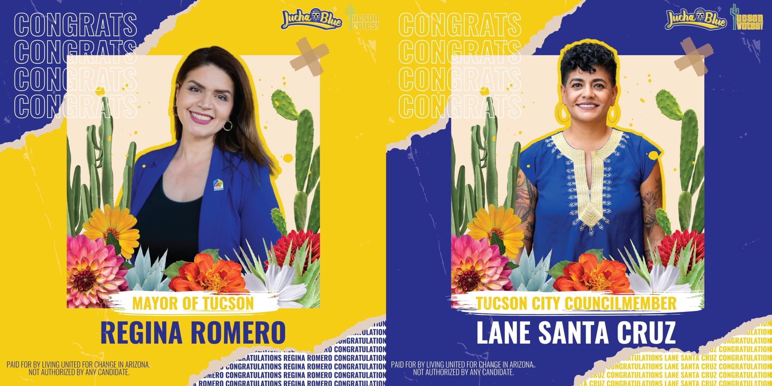 Living United for Change in Arizona (LUCHA), celebrating the re-election of Tucson Mayor Regina Romero and Tucson Councilmember Lane Santa Cruz.