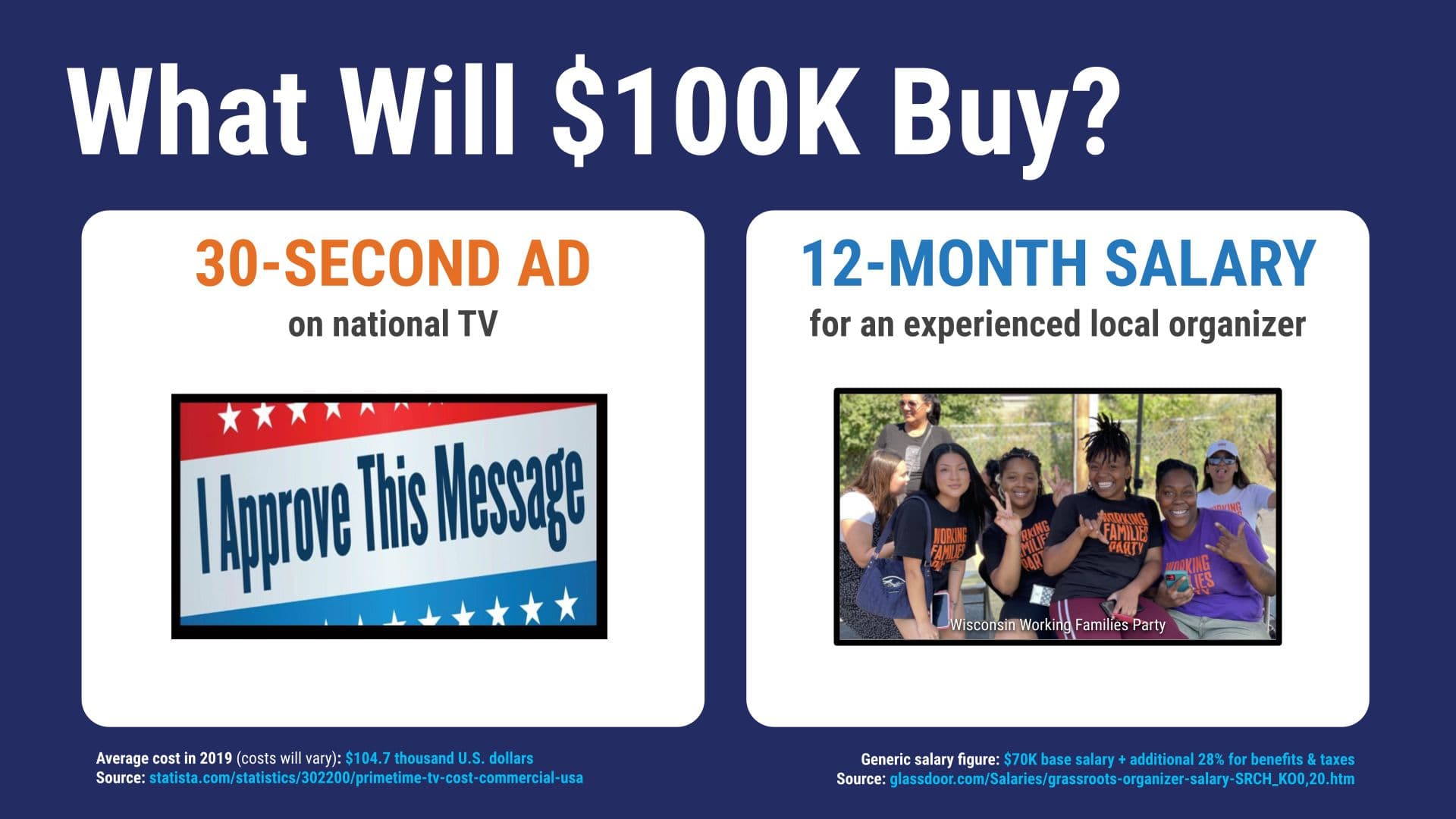 A few thousand votes in a handful of states will likely tip the Electoral College and control of Congress. This means there is one factor in our control: The level at which we fund local organizing in battleground states.